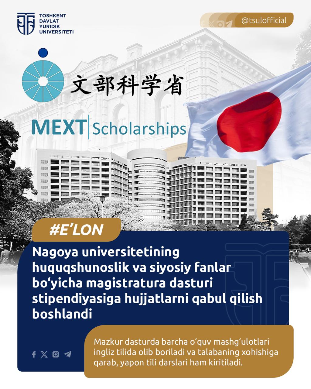 Detailed information about the admission requirements and the program can be obtained at the Nagoya University Representative Office in Uzbekistan.