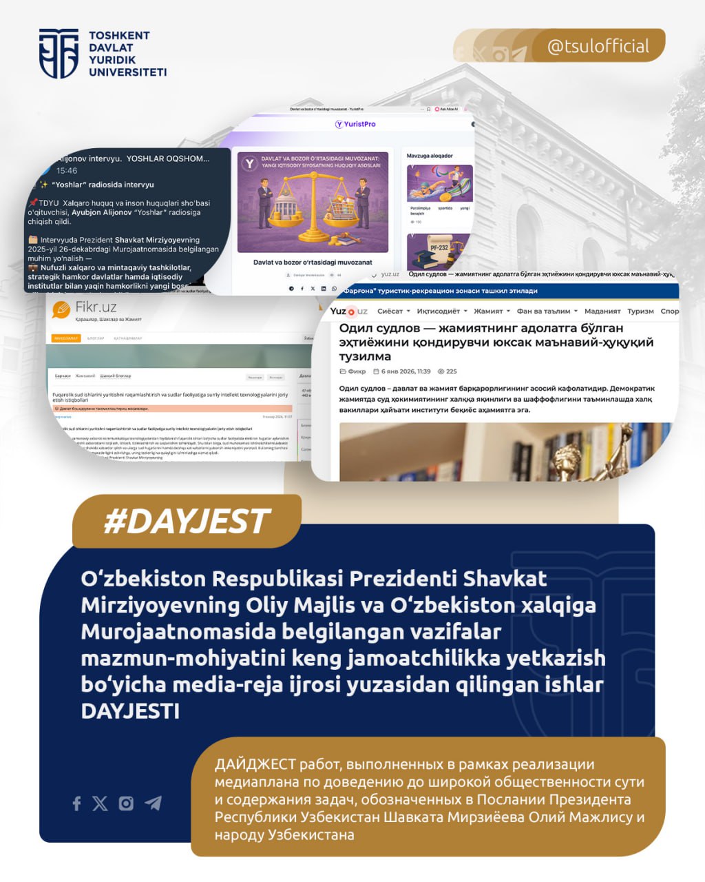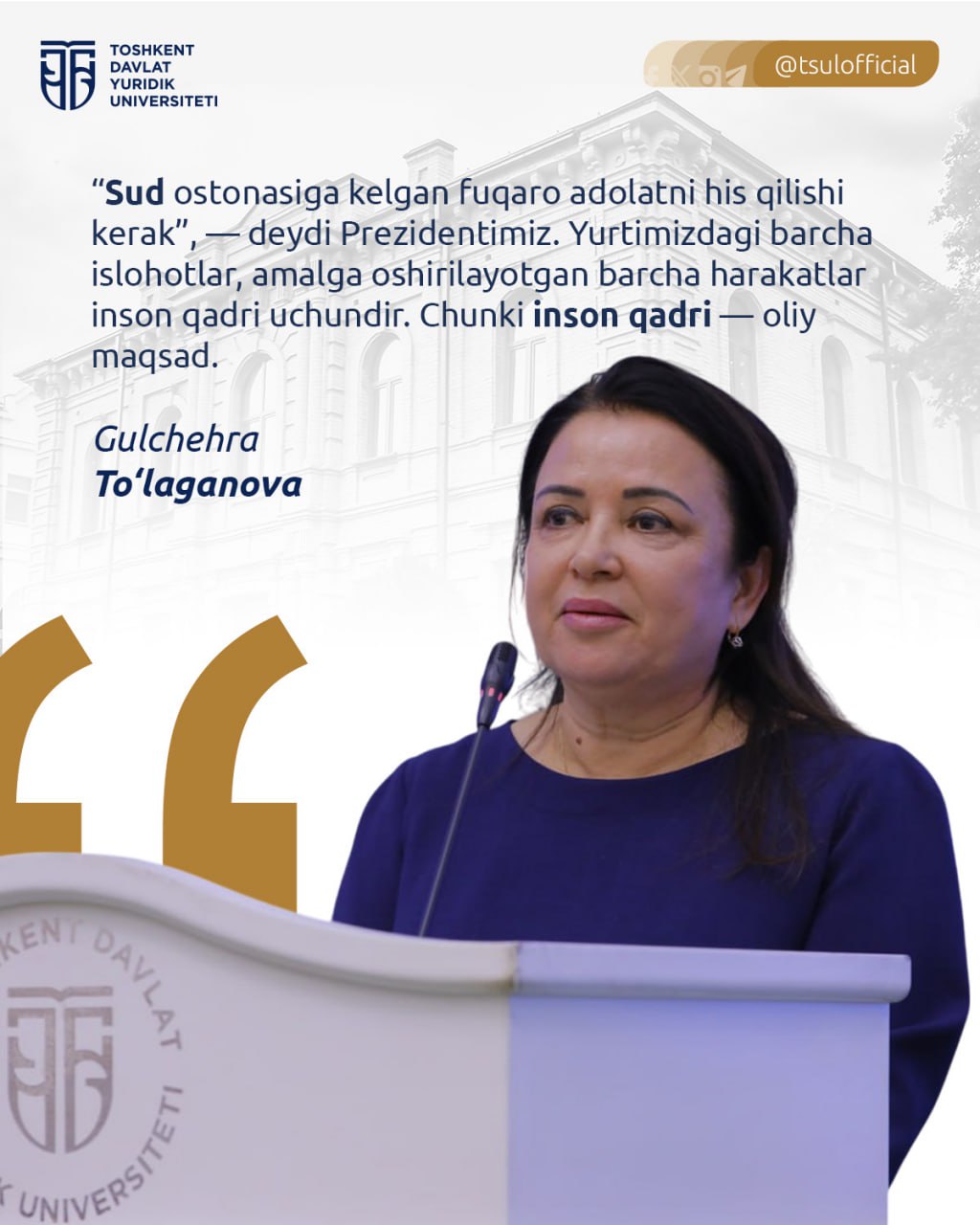 Занятия проходят в здании №4 Ташкентского государственного юридического университета.