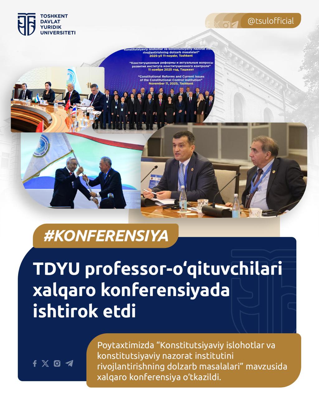 Toshkent davlat yuridik universiteti “Ma’muriy va moliya huquqi” kafedrasi tashabbusi bilan tashkil etilayotgan anjuman TDYU 3-bino 234-xonada 17-may 10:30 da boshlanadi.
