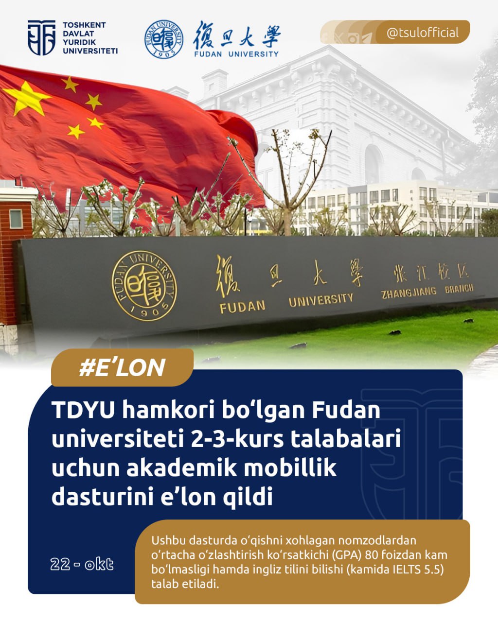 Akademik mobillik dasturida ishtirok etishni istagan talabalar quyidagi hujjatlarni 22-oktyabrga qadar fakultet dekanatlariga topshirishi zarur: