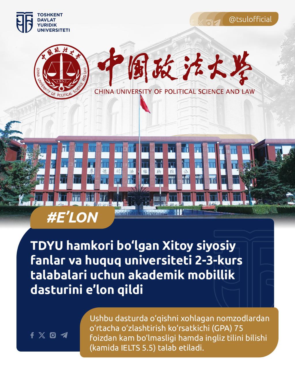 Ushbu dasturda o‘qishni xohlagan nomzodlardan o‘rtacha o‘zlashtirish ko‘rsatkichi (GPA) 75 foizdan kam bo‘lmasligi hamda ingliz tilini bilishi (kamida IELTS 5.5) talab etiladi.