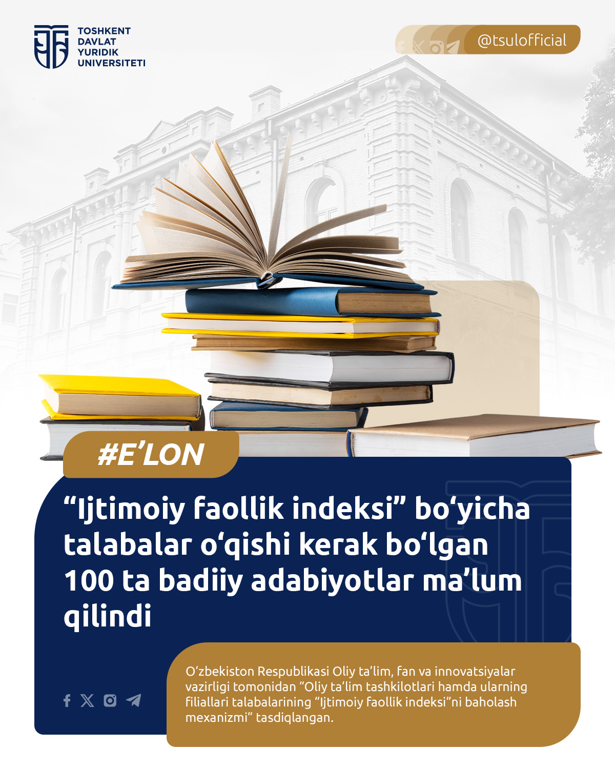 19-sentabr 10:00 da TDYU 3-bino 234- xonada (magistrlar va doktorantlar uchun):